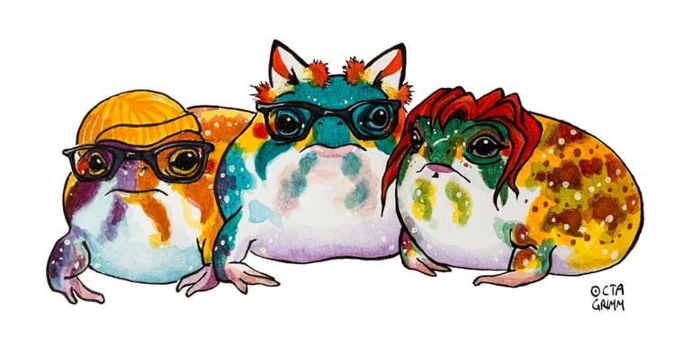 Ich nehme mir Zeit für dich und deine Wünsche -- dein ganz persönlicher Frosch kann aussehen, wie du willst! Traditionell mit Aquarelle und Tinte auf Papier gemalt.
