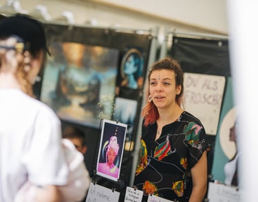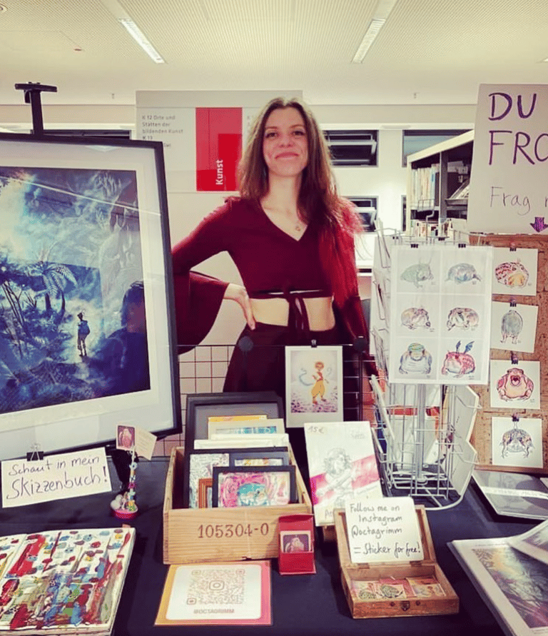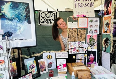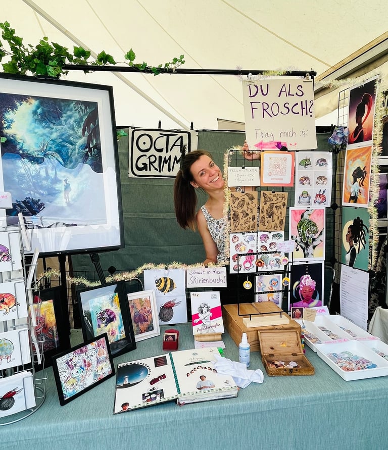 Der nächste Schritt bestand darin, mich auf Messen zu wagen und dort meine Illustrationen auszustellen. So knüpfte ich neue Kontakte zu anderen Künstlern und verbesserte dank deren Feedback kontinuierlich meine eigenen Fähigkeiten.